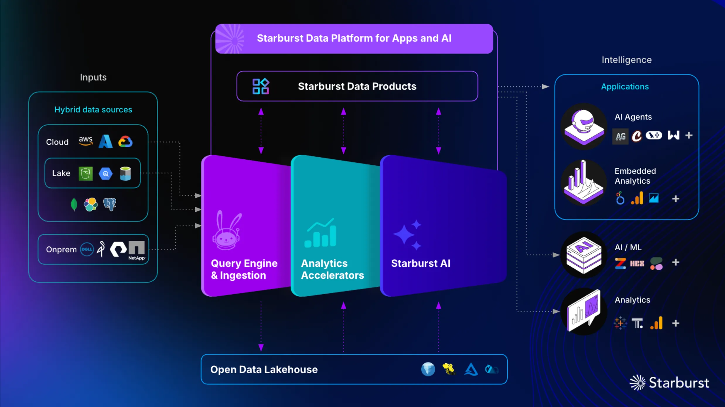 Starburst is the data platform for agents and AI – empowering teams to discover, trust, and act on data with built-in governance and context.