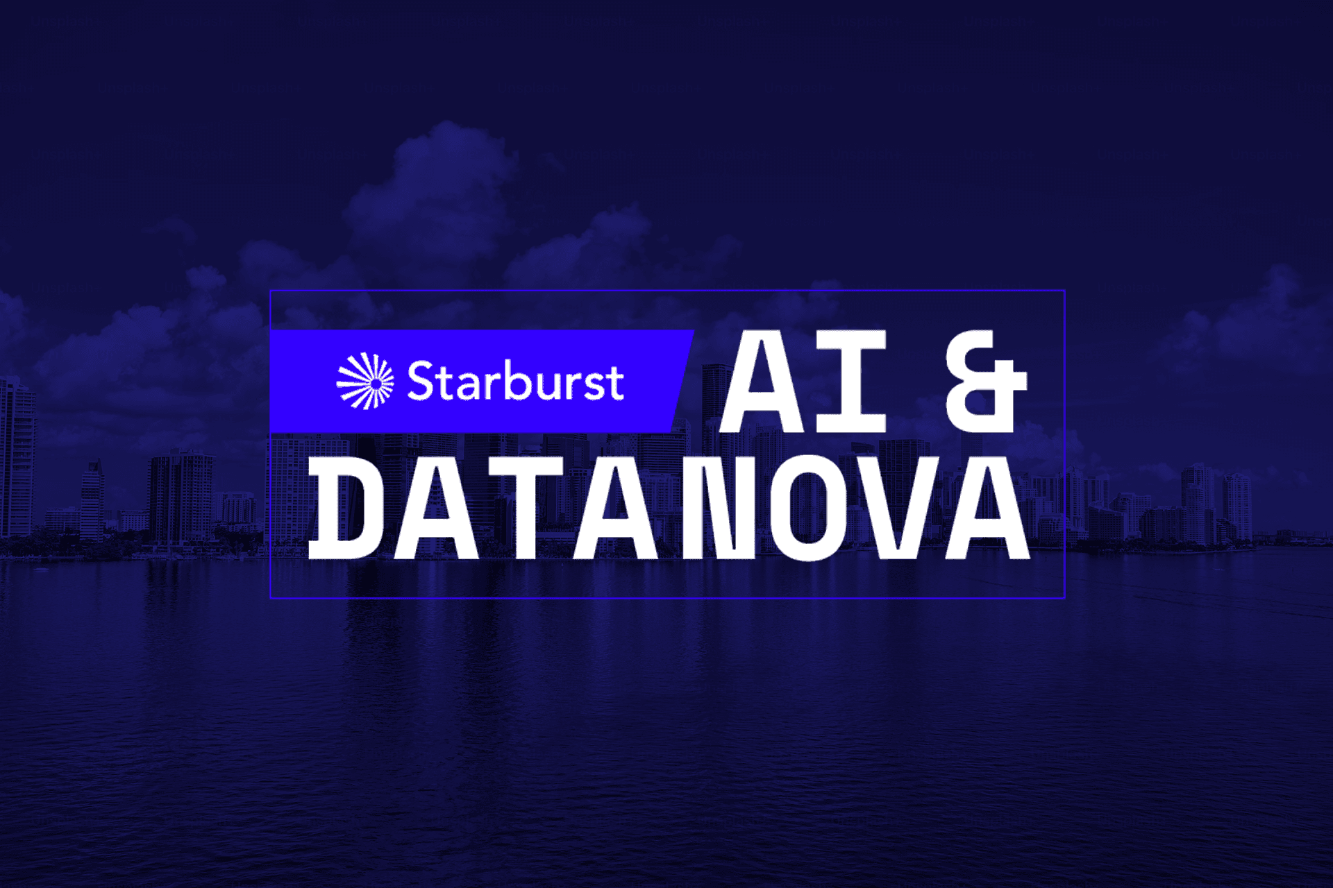 AI & Datanova 2026 is Starburst’s premier in-person executive event. It brings together Senior Data and Technology Leaders to share real-world lessons and explore how organizations are scaling AI securely, cost-effectively, and with measurable impact. Join us May 27–28, 2026 at the Fontainebleau in Miami Beach for peer-level insights, customer stories, and curated networking. Attendance is limited.